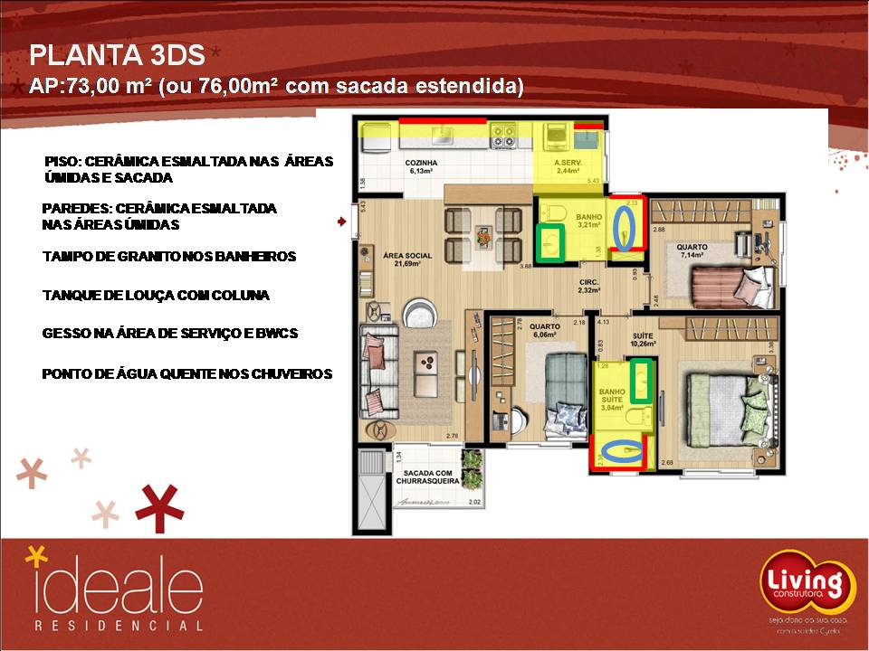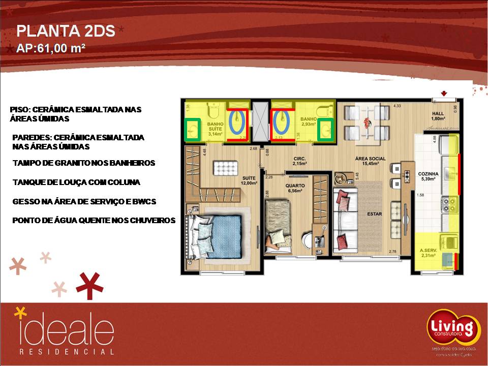 Empreendimento com 3 torre de 10 e 12 andares, sendo seis apartamentos por andar, de dois e três dormitórios. Contando ainda com toda a estrutura do conceito condomínio clube Cyrela.