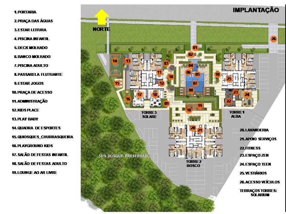 Empreendimento com 3 torre de 10 e 12 andares, sendo seis apartamentos por andar, de dois e três dormitórios. Contando ainda com toda a estrutura do conceito condomínio clube Cyrela.